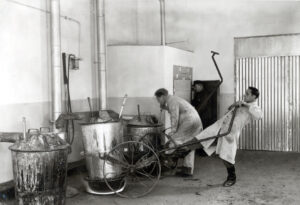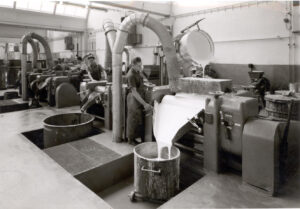 "When a lorry arrived, everyone was rounded up. We then formed a line to unload the sacks," recalls Walter Bank. To ensure that the men had enough strength, each member of the production team was given half a litre of fresh milk from the dairy – bottled in glass bottles labelled with their names. On Saturdays, Emil Frei would come by and treat his staff to a crate of beer.